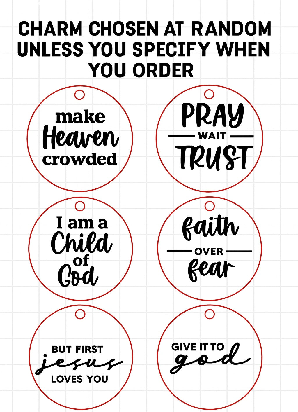 - Includes a wooden faith charm (charm chosen at random unless specified at checkout)